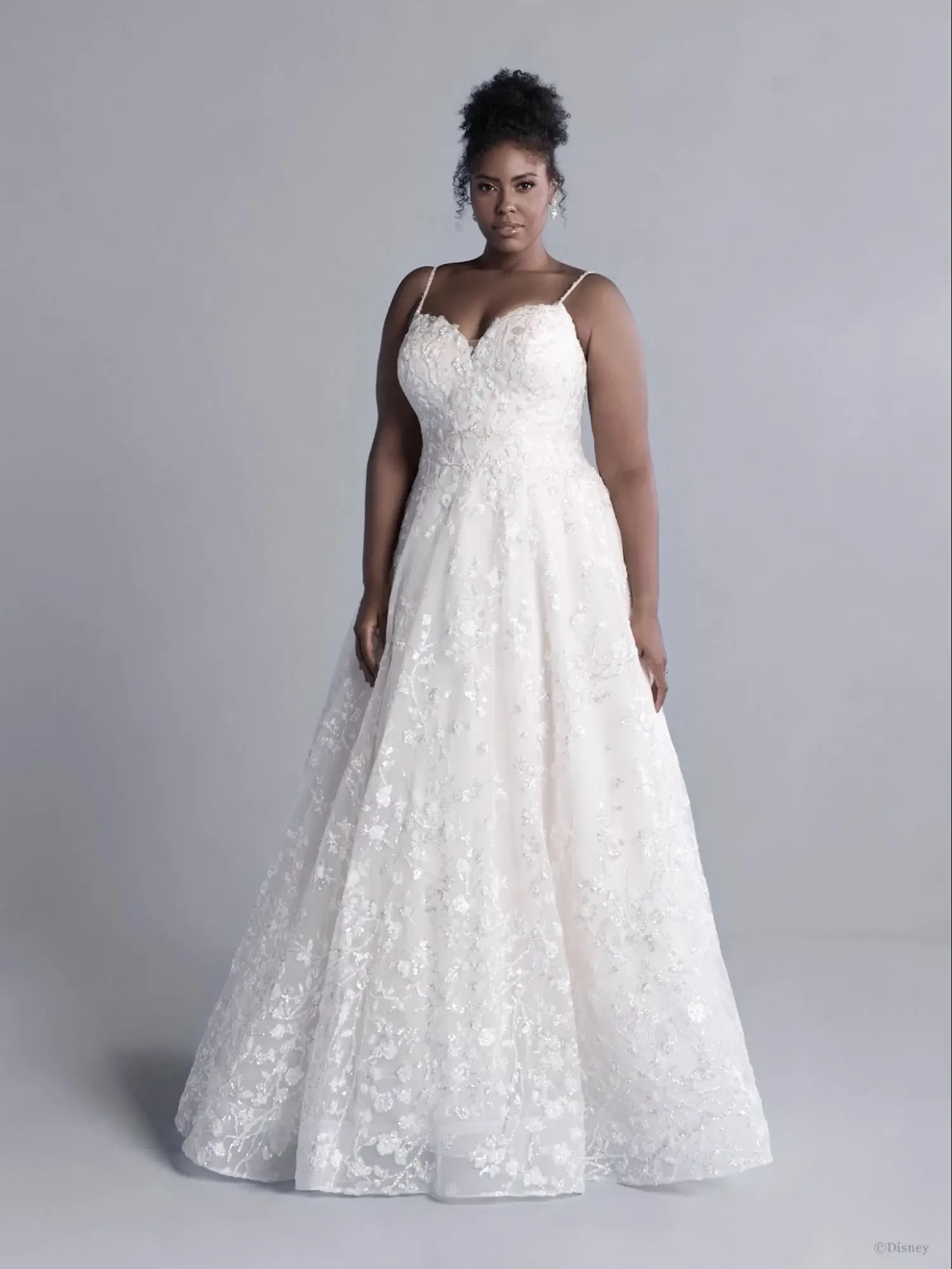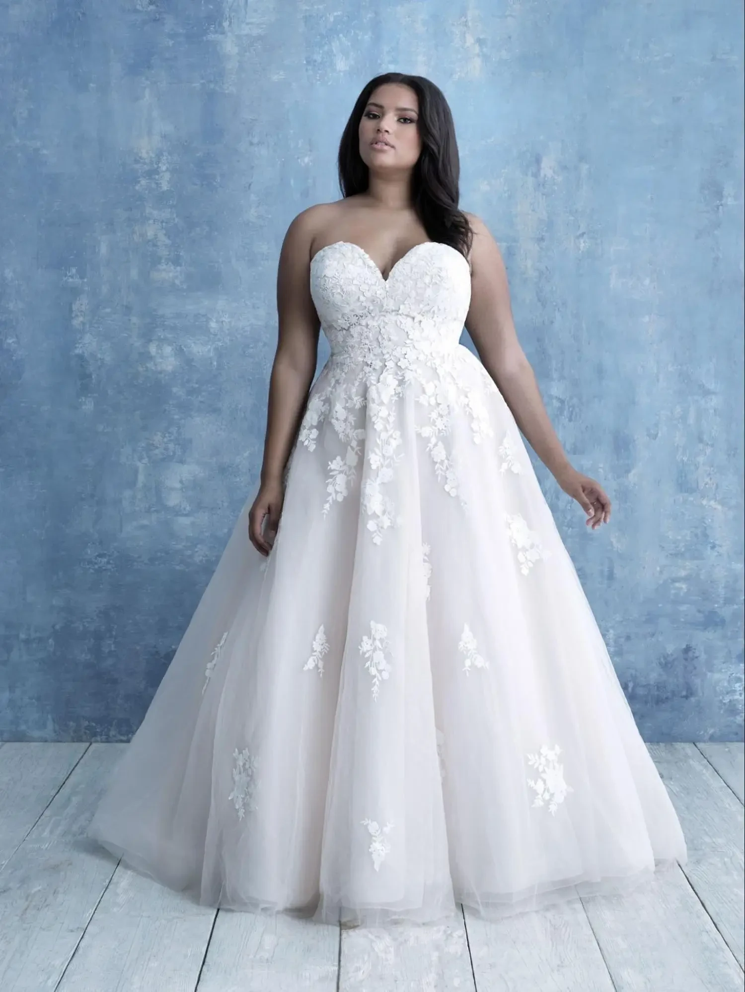 The main advantage of the ball gown design is that it's suitable for different body types and it’s a good choice for plus size brides.
