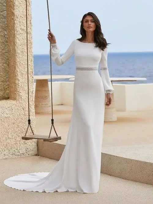 The details complete the design of the wedding dresses. The type of neckline, sleeves, one-shoulder, or strapless models makes each dress unique. You can choose between different dress trains and embellishments such as embroidery, beads, lace, and much more.